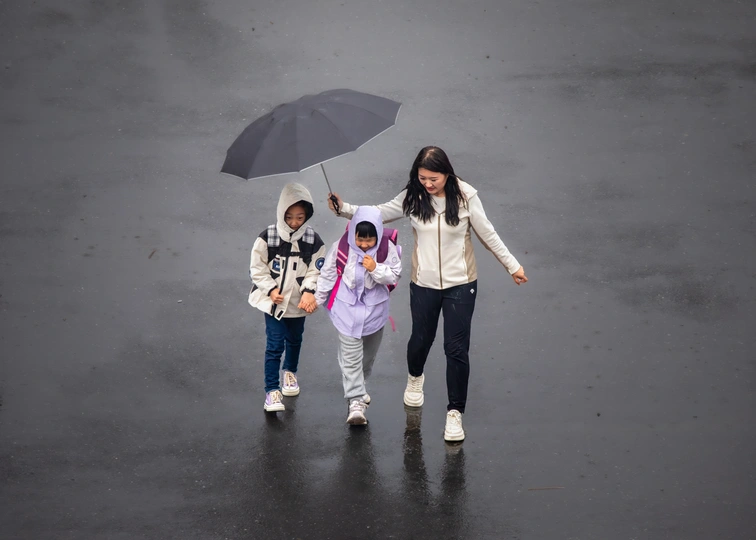 雨中,一位母亲撑着伞,走在两个孩子身旁。她就像守护花朵的使者。雨滴打在伞面,溅起细碎水花,她却无暇顾及。专注地看向孩子,提醒他们慢些走,别滑倒。在成长路上,她如伞遮风挡雨,用爱与责任呵护着这些稚嫩幼苗,让他们能在温暖与安全中,向着阳光,茁壮成长。
