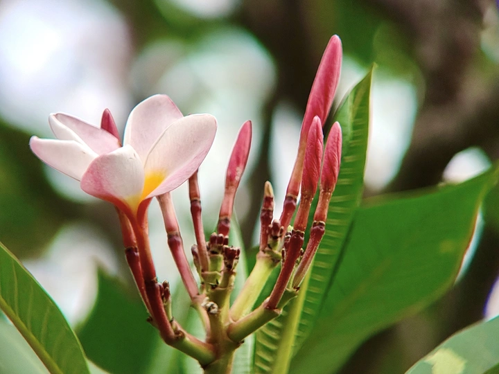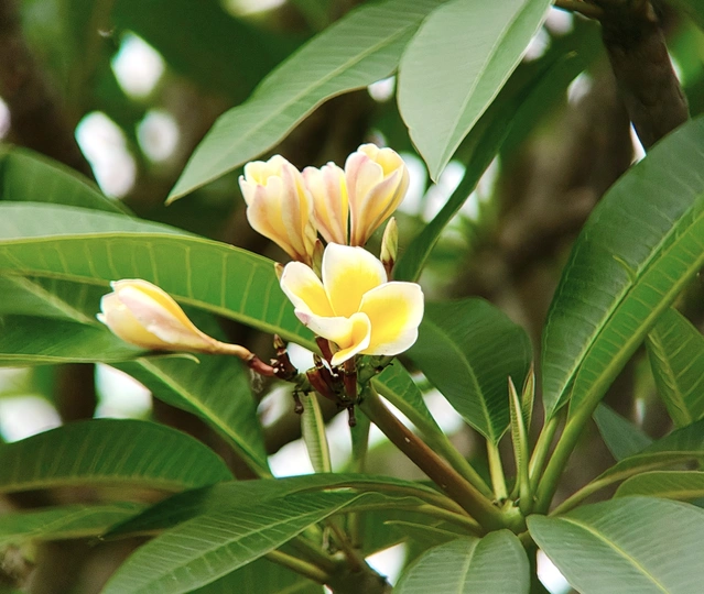 鸡蛋花,洁白如玉,蛋黄心蕊点缀其间,宛如晨曦初照,温柔而明媚。每一瓣轻盈,都散发着淡雅芬芳,让人心旷神怡。它不仅是自然之美的杰作,更寓意新生与希望。在喧嚣尘世中,鸡蛋花静静绽放,提醒我们珍惜平凡中的美好,让生活因这份纯净而更加温馨。