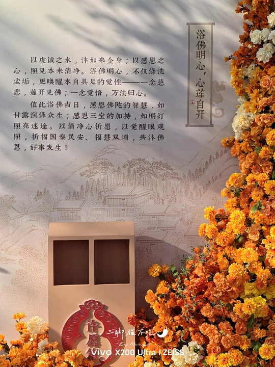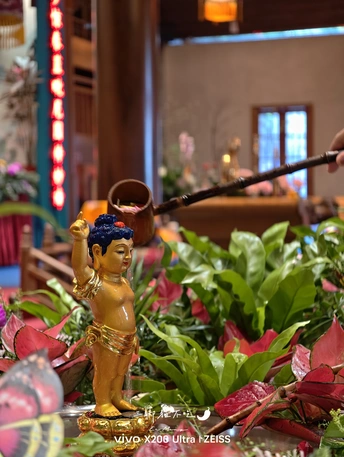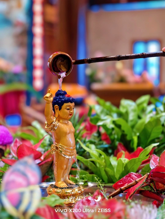 🌸 心沐清莲,静待花开 🌸 农历四月初八,浴佛节至。以香汤灌沐佛像,涤荡尘心,亦如以“戒定慧”之水,洗去贪嗔痴慢疑。佛曰:“心止即岸,烦恼如水,倒掉即空”,愿我们皆能借这一瓢清净,放下执念,拥抱自在。 莲花步步生,佛光处处照。愿慈悲为舟,智慧作桨,于纷扰中守一份澄明,于喧嚣里觅一方安宁。祈愿众生离苦得乐,福慧双增,生活如杜鹃绽蕊,绚烂无忧。