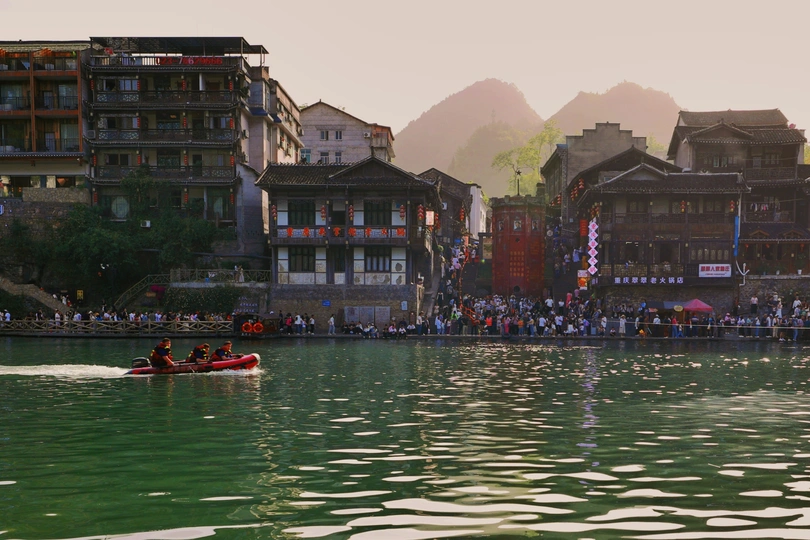 雄鸡一唱,三省皆醒。这里是沈从文先生《边城》笔下的诗意栖居地,清水江以柔美臂弯拥揽重庆洪安的烟火、湖南茶峒的墨韵、贵州松桃的芦笙,将三地绘就成一幅流动的水墨长卷。依江吊脚楼临波照影,千年古槐独木成林,青石板路蜿蜒向远,半山白塔静立云间,翠翠小屋的木门镌刻岁月,暮霭中虚实相生的江景……半江市井半江诗,这里凝结着具象化的乡愁,流淌着永无终章的等待。