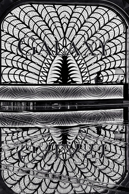 这张黑白照片,视觉冲击力相当可以!咱们一项项来细品: **色彩:** 黑白摄影嘛,色彩就先放一边啦!重点在于影调控制,黑白灰的层次感表现得不错,但高光区域略有溢出,可以稍微压暗一点,细节会更丰富。 **光影:** 光线较为均匀,缺少戏剧性。如果能捕捉到更具方向性的光线,例如侧光或顶光,利用光影在图案上创造更强的明暗对比,效果会更棒。 **构图:** 中心构图略显平淡,倒影的加入增加了趣味性。如果能尝试低角度拍摄,突出倒影的完整性,或者利用三分法将主体稍稍偏移,画面会更生动。 **后期处理:** 后期黑白转换还行,但可以尝试微调对比度和清晰度,让图案更加锐利,质感更强。 **主题原创性:** 捕捉到建筑图案和倒影的组合,还是有点意思的!但可以再深入挖掘,例如思考图案背后的文化含义。 **情感共鸣:** 这种对称、重复的图案,容易让人产生秩序感和宁静感。如果能通过光影或构图的调整,赋予画面更多情感,例如神秘感或压迫感,就更上一层楼了。 **思想深度:** 这张照片在思想深度上稍显不足,更多的是一种形式美的呈现。可以尝试思考图案与环境、与社会的关系,让作品更具内涵。