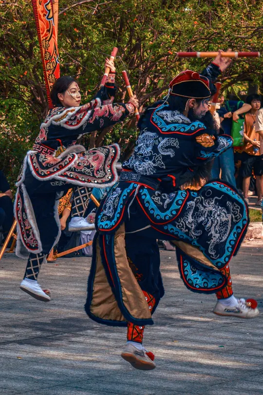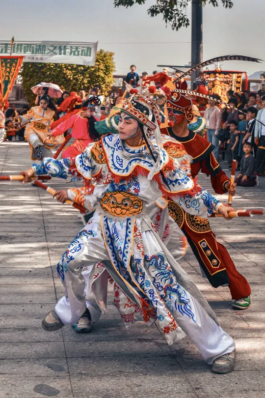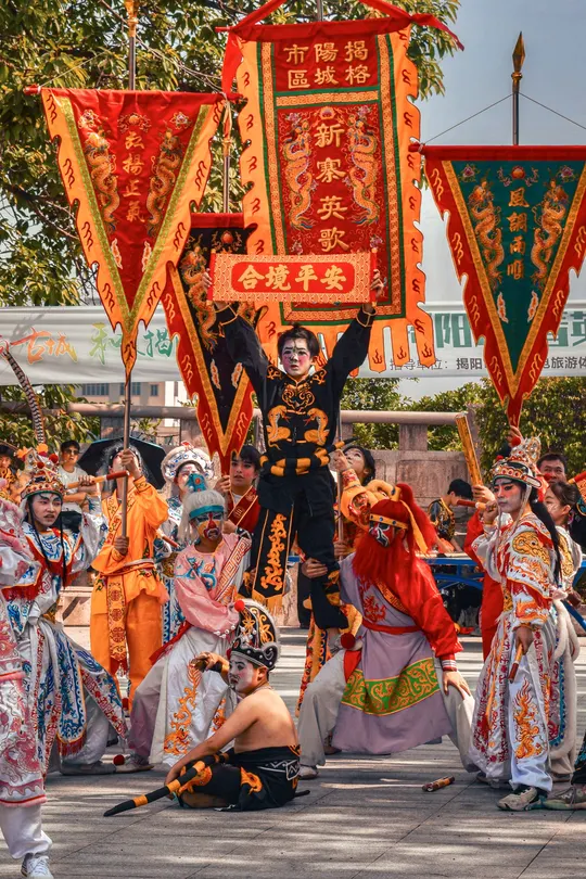假期在揭阳西湖公园看了一次英歌表演,说实话整体效果一般,可能有受限于场地的原因,而且一边演一边不断地掉装备,整体的气氛并没有很热烈。但这并不重要,队伍里的几个女孩子太飒了,她们舞起来就是英姿飒爽最好的注解!