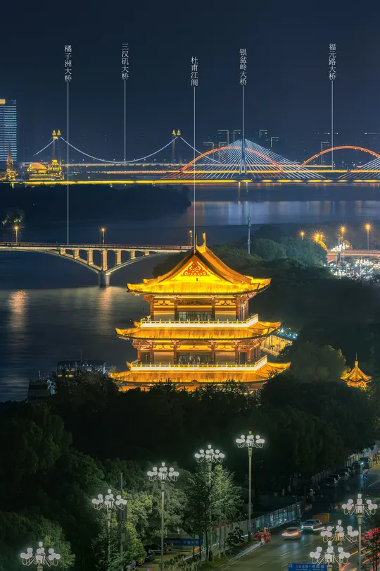 杜甫江阁与四座大桥同框