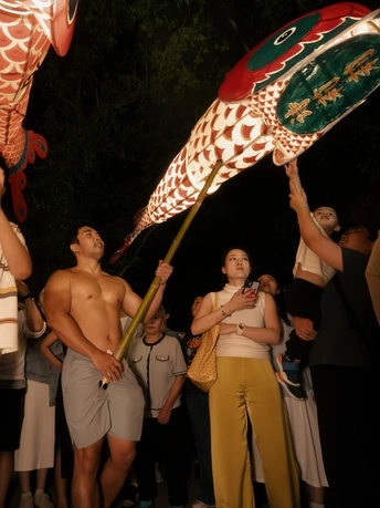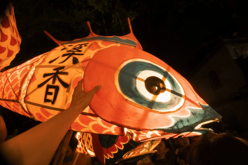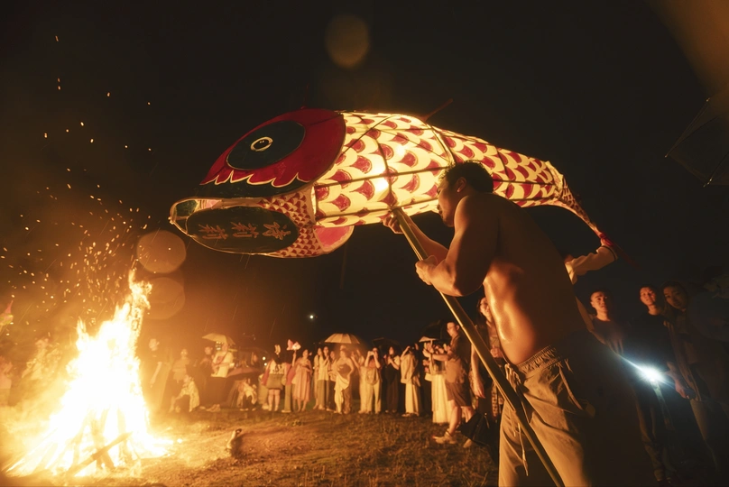 这组图拍摄于2025年5月4日的安徽西溪南古村落,图中是安徽地区劳动人民的非遗传统“鱼灯”“大鱼王”带领着游客感受鱼灯,篝火,为大家祈福