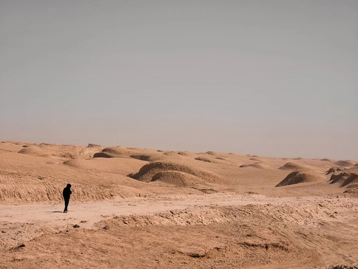 孤独的火星人。在那片宛如火星般荒芜寂寥的沙漠里,沙海茫茫,每一粒沙尘都似宇宙中的星辰,游离而又孤独。一个孤独的火星人般的身影,被广袤的沙海紧紧包裹,渺小得如同宇宙角落里一颗黯淡的流星。他静静伫立,面对着那层层叠叠、似在岁月长河中凝固的沙丘,每一道沙纹都像是时光刻下的密码,无声地诉说着宇宙洪荒的故事与亘古不变的历史。他似是来自遥远星际的旅人,在这片陌生又寂静的沙之宇宙中,独自探寻着未知与永恒。