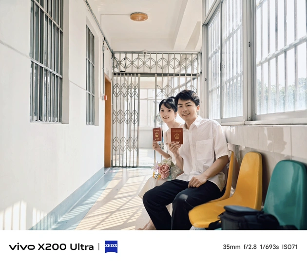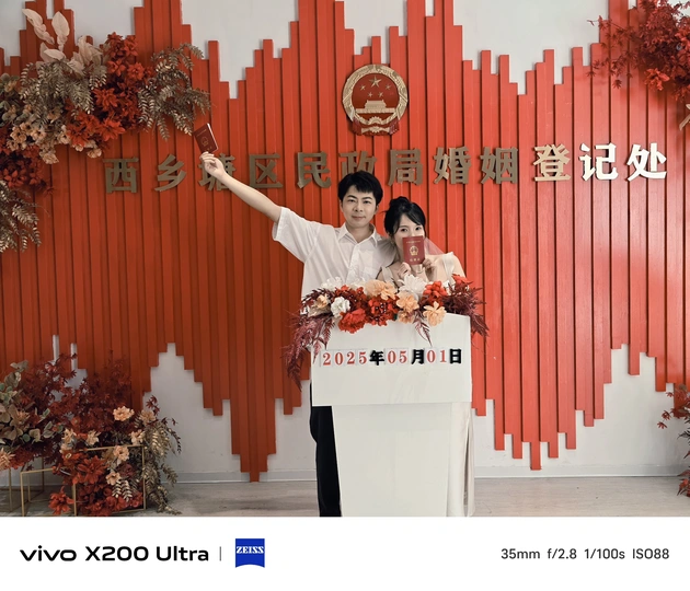 今年五一假期,没有特意去那里玩,但是做了一件有意义的事,给好兄弟记录他的领证时刻。得益于现在手机的便捷与强大,我用vivo X200 Ultra经典负片滤镜记录下领证全程。当民政局白衬衫遇上复古胶片颗粒感,连空气都变成了焦糖玛奇朵的甜度。领证成功的欣喜,迸发出充满活力的生命力。祝愿好兄弟百年好合,长长久久。