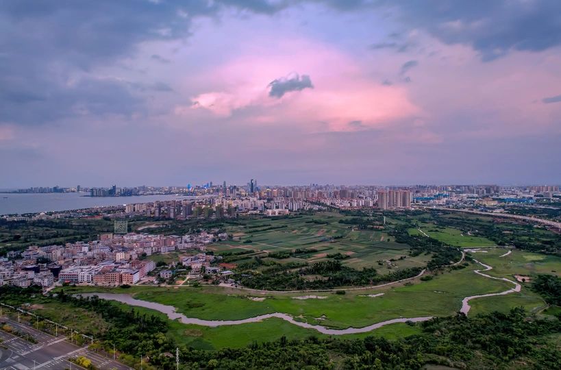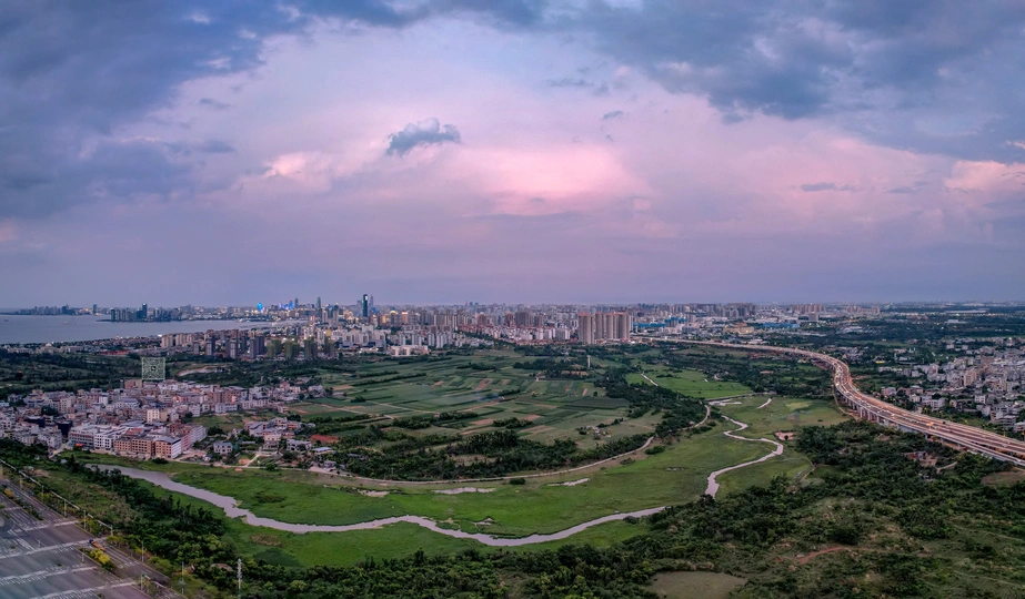 「五源河淌过田园的静谧,海秀快速路划破城市的天际线。一半繁华,一半葱茏——海口,在快与慢的交叠中生长。」