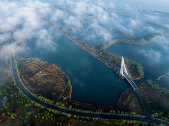 薄雾弥漫的清晨,卧龙湖宛如一幅水墨长卷。湖水在雾霭中静谧深邃,似藏着无尽秘密。天鹅桥横跨湖面,洁白的桥身优雅伸展,如一只静卧的天鹅。晨雾为它披上薄纱,如梦似幻。漫步桥上,湖光雾色交融,微风拂过,吹散几缕雾丝,让人仿若踏入仙境,沉醉在这空灵美妙的景致里。