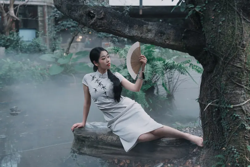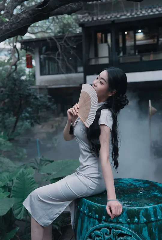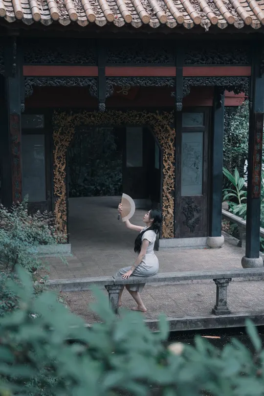 岭南园林中的旗袍雅韵 走进岭南园林,独特的亭台水榭、繁茂绿植映入眼帘。温润的水汽弥漫在空气中,给整个园子增添了几分朦胧诗意。 此次拍摄,模特身着素雅旗袍,旗袍的剪裁勾勒出温婉身姿,与岭南园林的精巧布局相得益彰。我们在回廊间、水畔旁取景,每一处转角、每一扇漏窗,都成了镜头下的绝美背景。在光影交错中,旗袍的韵味在岭南园林里尽情舒展,既展现了传统服饰的典雅,又传递出岭南园林独有的闲适与灵秀,定格的每一帧画面,都是东方美学的生动诠释。