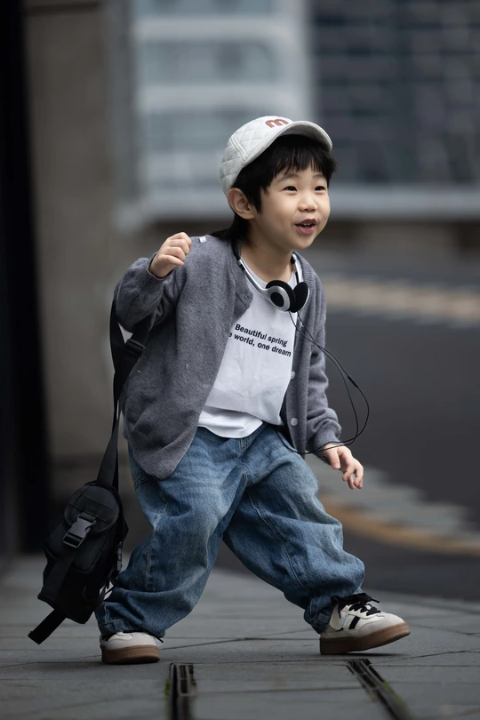 「笑容是蕞酷的配饰,步伐自带BGM~」 今天也是街头最靓的崽!👦🔥 #潮童日记 #快乐满分! @米拍器材