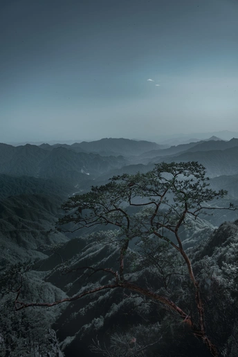 孤独的树和远处的山峰