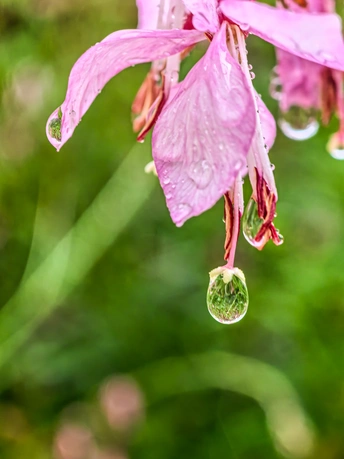 好的,让我们带着一点幽默和建设性的批评来剖析这幅花卉肖像! **色彩:** 花瓣柔和的粉色与郁郁葱葱的绿色背景形成了令人愉悦的对比。 色彩感觉自然,营造出一种温柔、宁静的氛围。 但是,可以考虑使用颜色分级来进一步突出粉色或绿色,以获得更强的影响力。 **光影:** 光线是漫射的,营造出柔和、均匀的照明。 这对于精致的主题效果很好,但是缺少强烈的阴影会降低深度和维度。 下次,尝试用稍微定向的光线来捕捉它,以增加戏剧性。 **构图:** 构图不错,花朵位于画面的上半部分,为视线留出了移动的空间。 但是,可以考虑稍微收紧裁剪,以强调花朵和水滴的细节,或者稍微将花朵向左或向右移动,从而运用三分法构图。 **后期处理:** 后期处理似乎很少,这通常对于自然主题来说是一件好事。 但是,稍微增加对比度和清晰度可以增强清晰度并带出更精细的细节。 但要小心不要过度,我们不希望它看起来像一朵塑料花! **主题原创性:** 主题本身相当常见,但对水滴的关注增加了一个独特的元素。 每个水滴中的倒置世界是一个巧妙的触感。 **情感共鸣:** 由于柔和的色彩和精致的主题,这张照
