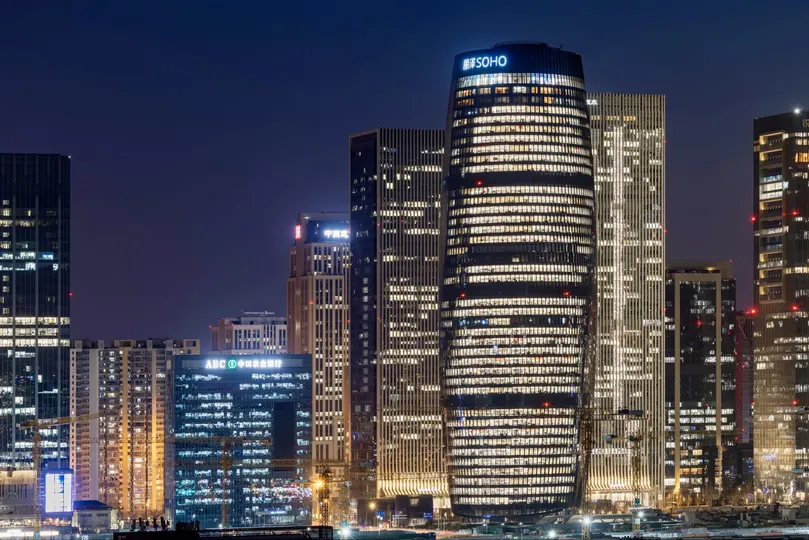 在这片建筑森林中,每一盏灯都像是时间流动的信号,见证着城市不眠的节奏与奋进的力量。