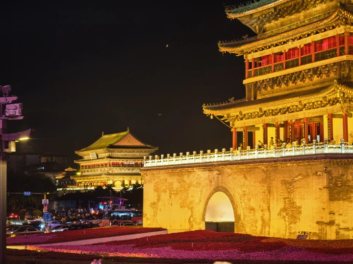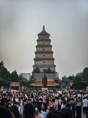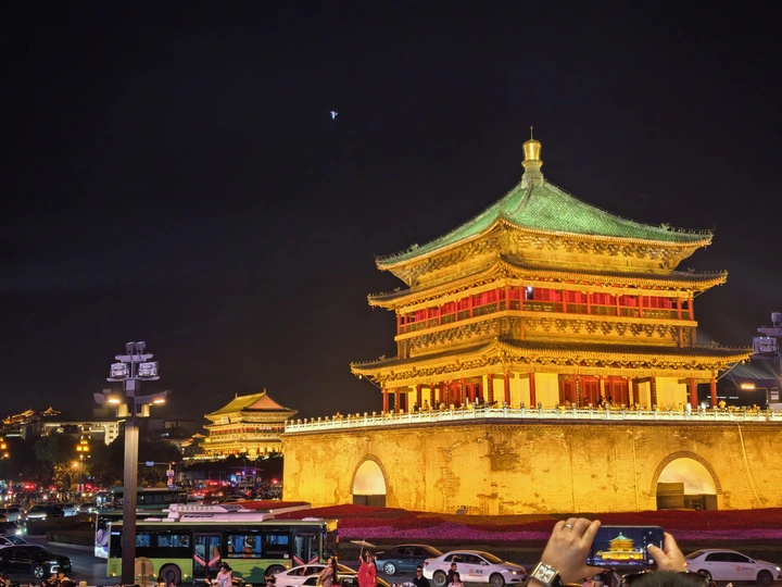 三两天的西安之旅,像匆匆翻阅一本厚重的史书。晨雾里的城墙砖缝还藏着千年霜雪,暮色中的钟鼓楼檐角挑着盛唐明月。在回民街咬开酥脆的肉夹馍,滚烫的腊汁漫过齿间,恍惚间竟与长安街头的驼铃声重叠。转角撞见大雁塔广场的音乐喷泉,霓虹水光中,玄奘西行的脚印与现代游人的欢笑悄然交织,这座城用最鲜活的烟火气,将历史揉进了每个平凡的晨昏。
