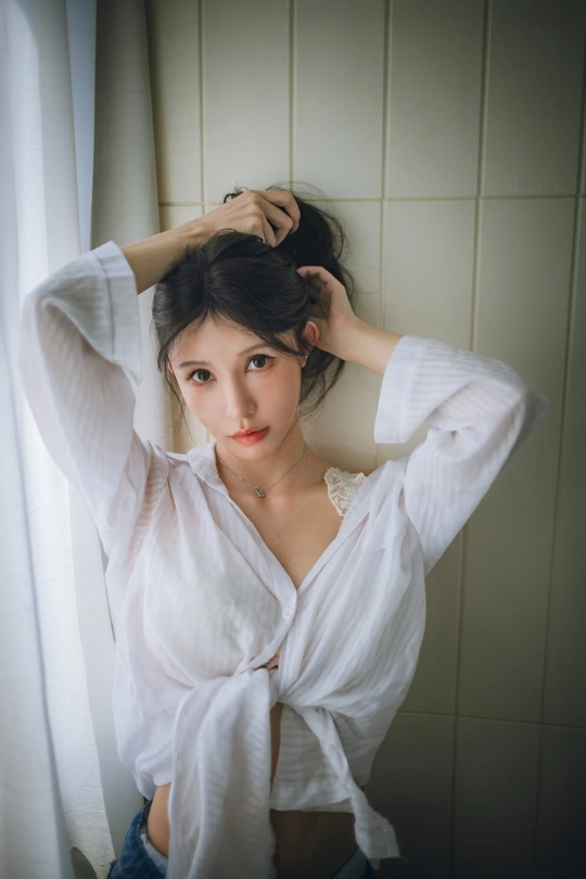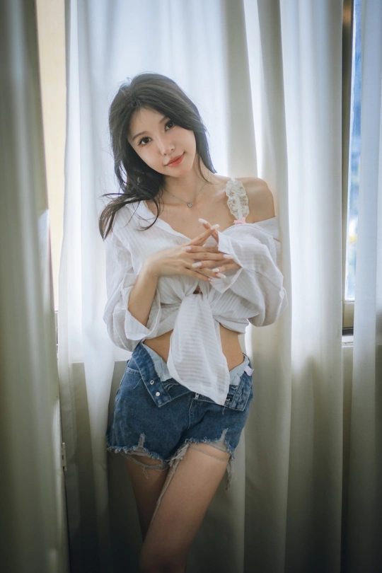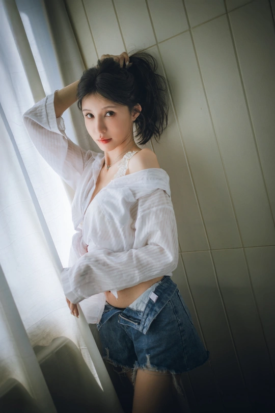夏天嘛短牛仔裤+白衬衫就好