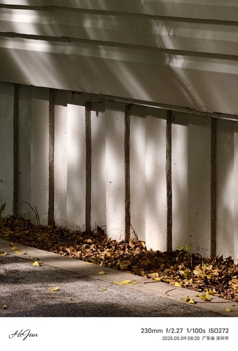 初夏的阳光,穿过枝叶缝隙,在墙面上洒下灵动的光影。新绿的叶片在墙边悄然生长,地面散落着些许泛黄旧叶,似是春离去的踪迹。光影闪烁,似在轻吟着季节交替的密语,于这方角落,藏着初夏独有的温柔与蓬勃。