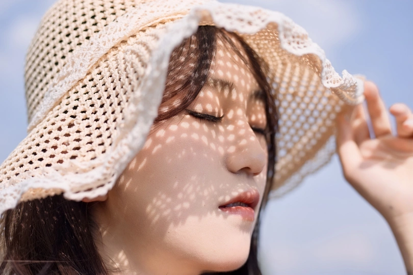 风穿过帽檐,洒下一场碎金般的梦。 她闭上眼,任阳光在脸颊上写诗, 仿佛整个夏天,都安静地停在这一刻。