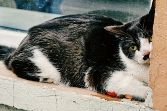 他身上脏兮兮的,蜷缩着身子,眼睛里是警觉和疲惫。