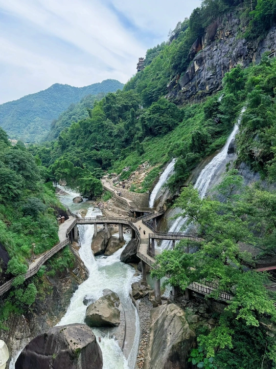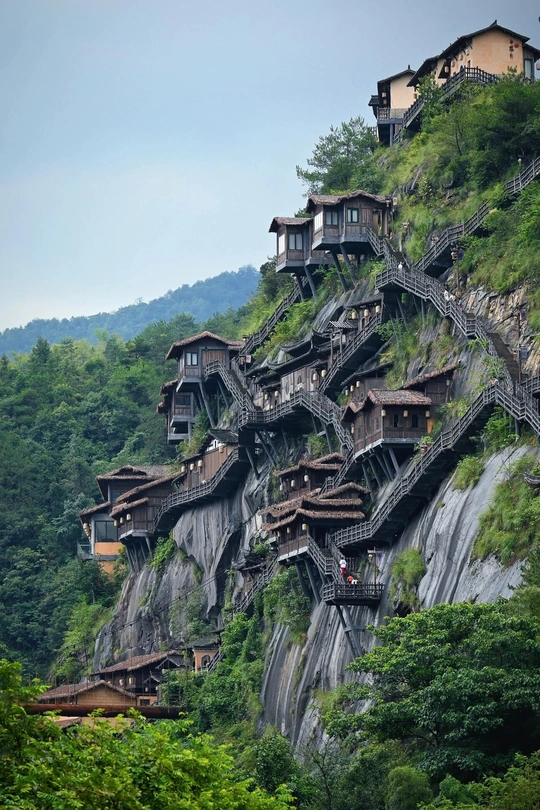 在江西上饶,藏着一个现实版的仙侠世界——望仙谷。踏入其中,就像开启一场奇幻的仙侠之旅。 这里山峦连绵,峡谷幽深,溪流潺潺,瀑布飞泻,溅起晶莹水花。仙踪林内古木参天,藤蔓缠绕,行走其间,呼吸都满是清新的负氧离子。灵龟石静静卧于山谷,诉说着古老传说,守护这片神秘土地。 古老村落中,徽派民居错落有致,青砖黛瓦、马头墙别具韵味。街边老木门散发岁月光泽,让人遥想往昔繁华。街巷中,特色小吃香气扑鼻,八宝葛粉羹、油条泡麻糍、灯盏粿等美食,每一口都是地道赣家风味。 最绝的是峭壁上的悬崖民宿,110多米高的白鹤崖,38间客房依崖而建,与山川峡谷融为一体。推开窗,峡谷风光尽收眼底,远处山峦云雾缭绕,仿若仙境。夜晚,山谷灯火辉煌,与星空交相辉映,枕着星河入眠,仿佛置身仙侠世界 。 望仙谷,一步一景,处处皆诗,是自然与人文交织的美好篇章 。