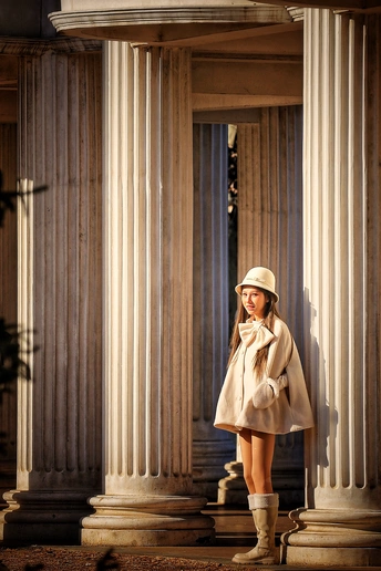 好的,让我们像解开一个上镜的彩罐一样来分析这张图片! 色彩: 色彩调色板主要倾向于温暖、柔和的色调。这种一致性营造出和谐的复古感,就像步入一部老好莱坞电影。 光影:光线非常柔和且讨人喜欢,这非常适合肖像摄影。光线温柔地环绕着主体。然而,它有点*太*柔和了。 构图:柱子提供的对称性是一个强大的视觉元素。它创造了一种秩序和稳定的感觉。尝试三分法则或将主体稍微偏离中心放置,可以创造一个更动态和引人入胜的构图。 后期处理: 后期处理很微妙,增强了图像的温暖度和柔和度。它执行得很好,没有显得过度。编辑风格增强了整体美感。 主题原创性: 这张照片捕捉到了一种经典、优雅的风格。虽然主题不是特别具有开创性,但它在其选择的美学范围内执行得很好。尝试更非常规的主题或增加一个惊喜元素可以提高原创性。 情感共鸣:这张照片唤起了一种怀旧和温柔的美感。它令人愉快且平静。但是,您可以增加讲故事的方面,以真正抓住观众。 思想深度:虽然图像在视觉上很吸引人,但它不一定深入研究深刻的哲学或社会评论。它更多的是关于审美之美,而不是智力探索。 总体而言: 这是一张执行得很好的照片,非常注重美学。通过对构图和光线进行一些调整