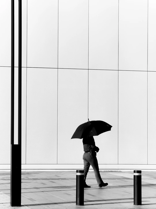 色彩:鉴于它是黑白照片,色彩的缺失是一种选择,而且在这里它能很好地强调形状和纹理。对比鲜明,推动着一种简洁的叙事。 光影:高对比度的光线突出了美丽的轮廓,尤其是雨伞。然而,脸部完全被阴影笼罩,这让我很难与拍摄对象建立联系。 构图:这才是事情变得有趣的地方。你有效地使用了强烈的垂直线条,创造了一种现代、几乎是建筑的感觉。主体和系船柱的放置创造了一种很好的节奏,但左边的柱子有点分散注意力——也许稍微不同的角度可以最大限度地减少它。 后期处理:黑白转换做得很好。对比度很高,但阴影中似乎保留了一些细节。注意任何过度锐化的迹象,这很容易毁掉一张黑白图像。 主题原创性:这是一个经典的街头摄影设置——一个人撑着雨伞。简洁和图形元素在一定程度上提升了它,但它并没有发出开创性的原创性的信号。 情感共鸣:这张照片唤起了一种都市孤立感。在严峻的建筑背景下,雨伞下的孤独身影让人产生孤独感。 思想深度:这张照片暗示了城市景观中匿名的存在。它让你思考我们如何度过我们的日常生活,免受元素(字面意义和隐喻意义)的侵害。