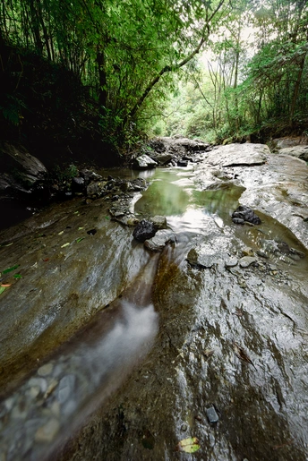 在这幅夏日山谷的画卷中,一条清澈的小溪蜿蜒流淌,它轻抚着岩石,低声诉说着岁月的故事。阳光透过茂密的树叶,洒下斑驳的光影,与溪水的波光粼粼交相辉映。溪边的石头,经过岁月的洗礼,显得格外光滑,它们静静地躺在那里,仿佛是大自然的雕塑。周围的绿意盎然,是夏日的盛装,它们在微风中轻轻摇曳,为这静谧的山谷增添了一抹生动的色彩。