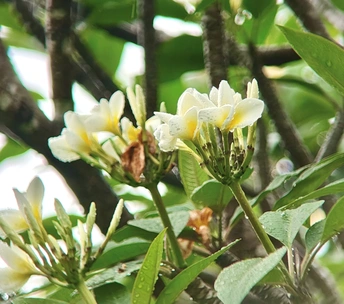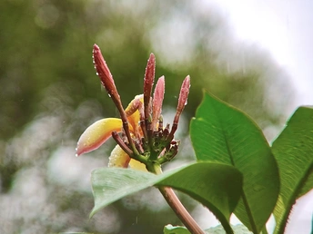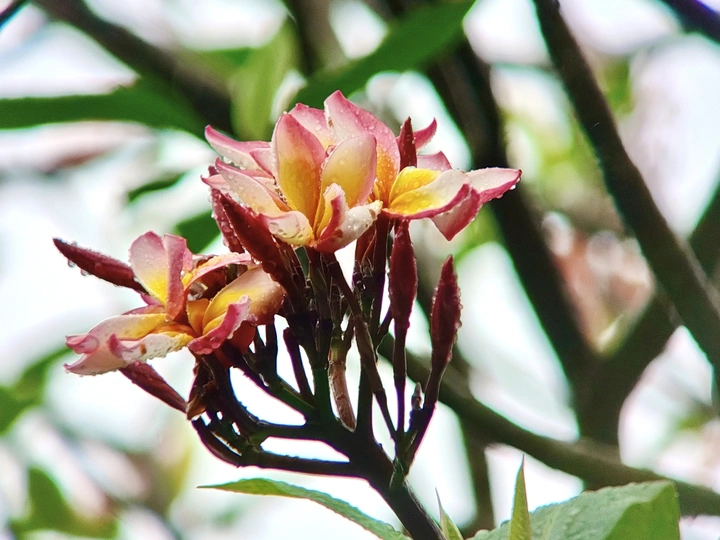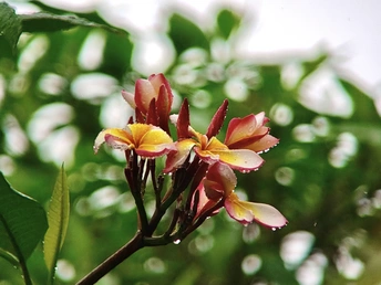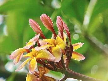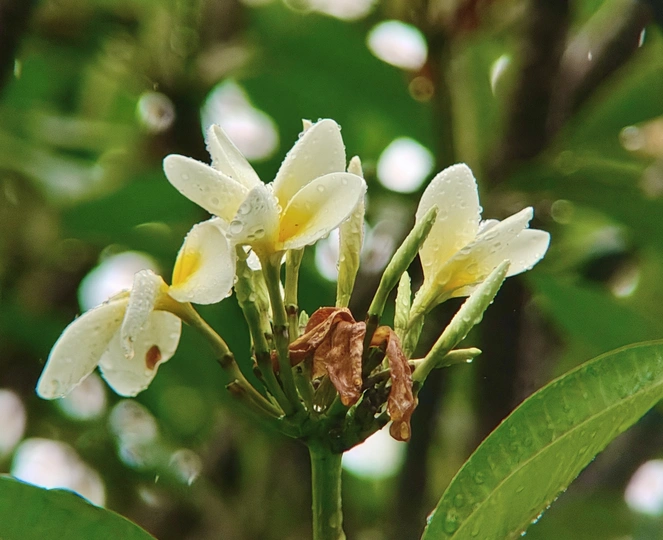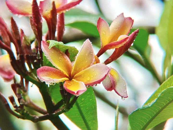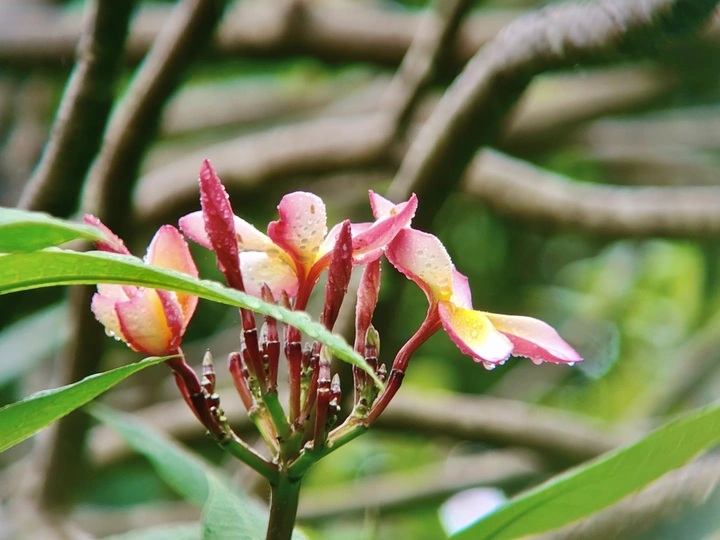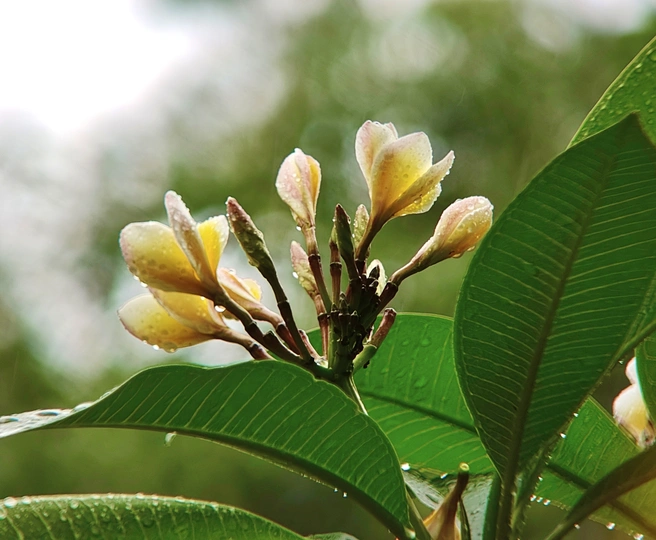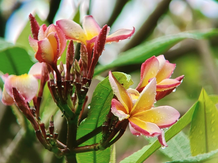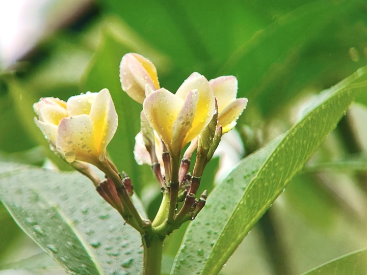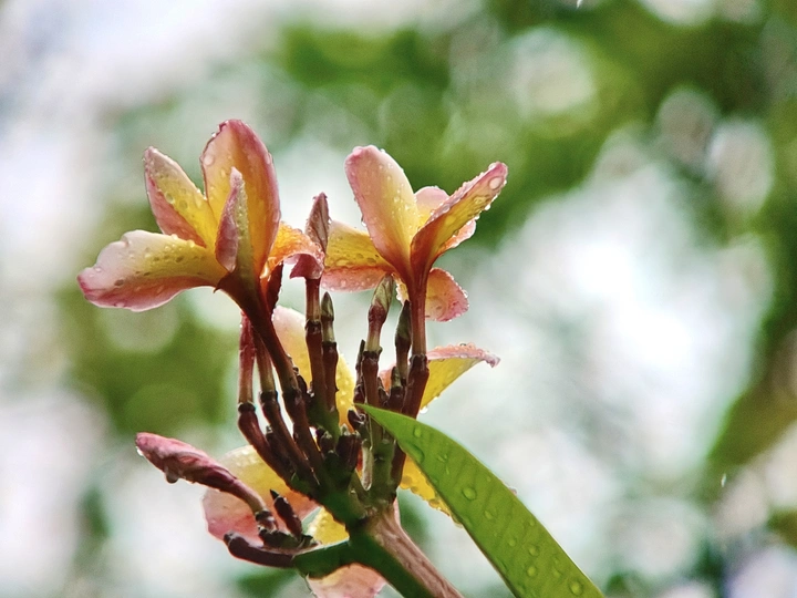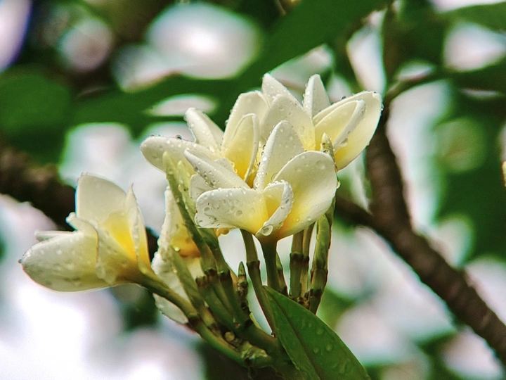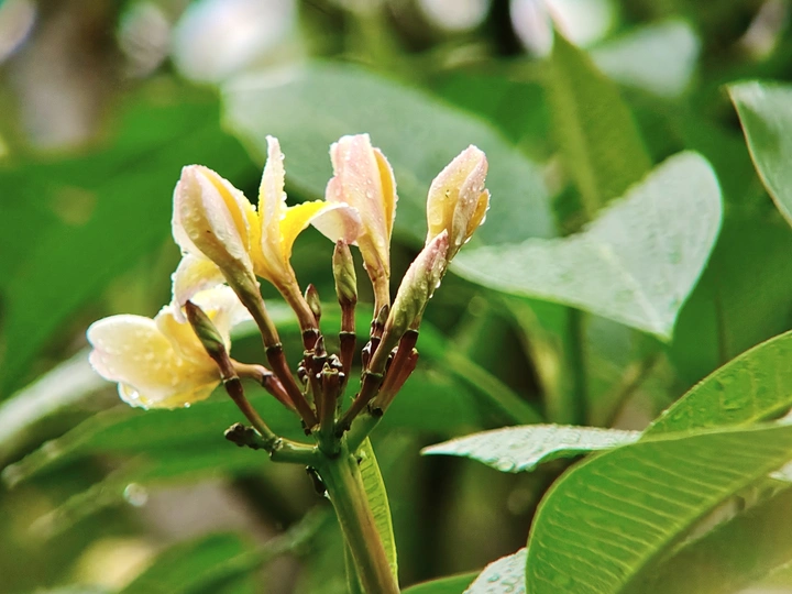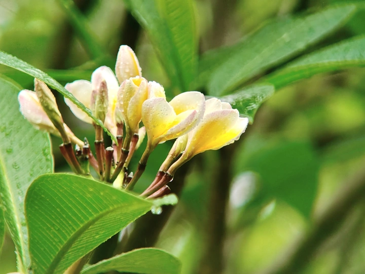 雨丝轻拂,滴滴晶莹润湿了娇嫩的鸡蛋花。花瓣轻颤,宛如雨中仙子,散发着淡淡的清香,与湿润的空气交织成一首清新的诗。雨珠滑落,留下一道道透明的轨迹,映衬得鸡蛋花更添几分柔美与雅致。雨中的鸡蛋花,静谧而坚韧,绽放着属于它的独特魅力。