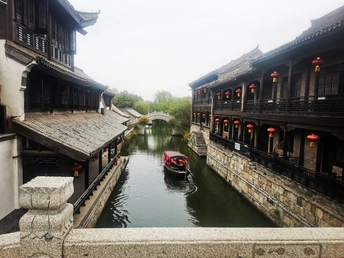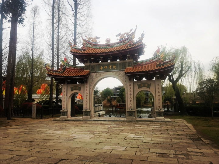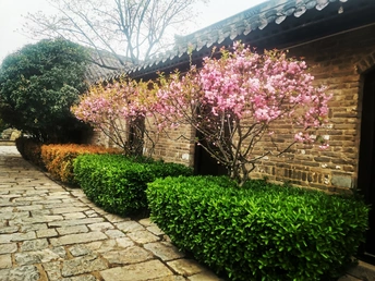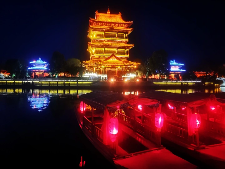 橹声划破琉璃盏,水巷青砖说岁华 匾额高悬明月夜,落花石上印三生 老墙新著胭脂色,一树春绯泄天机 万朵金莲开禁苑,画舫载动满河星