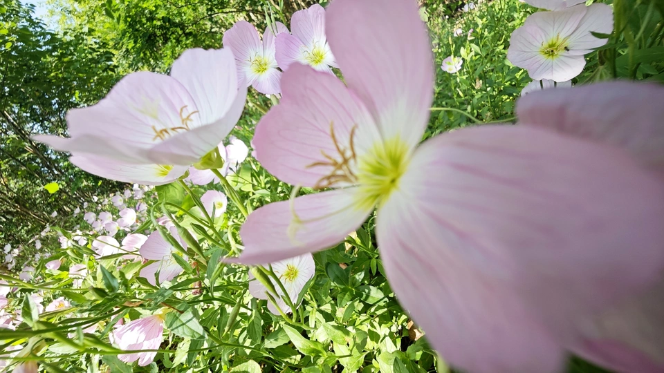 图中背景是月见花海,月见花的花语之一为默默的爱。这张照片拍摄时就感觉这两朵月见花就像一对年轻的情侣。女子亭亭玉立,落落大方,正含情脉脉地看向男孩,无声却尽显深情,男孩呢,阳光开朗,率性而不失温柔,正拿着手机大大方方地记录下属于独属于他俩的美好瞬间。