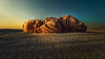 《大地之子》是位于甘肃省瓜州县戈壁滩上的大型红砂岩婴儿雕塑,由清华大学董书兵教授创作,旨在呼吁环境保护与生命共生理念。