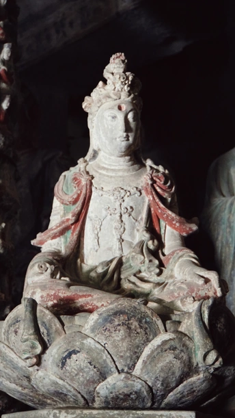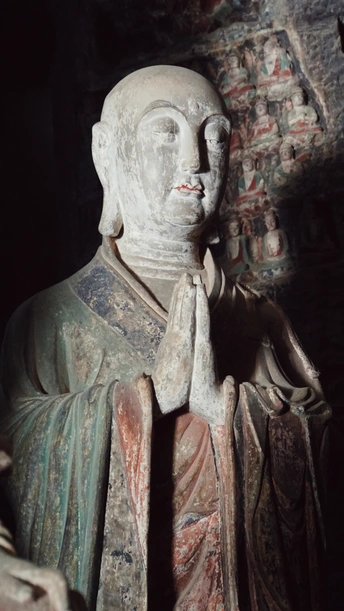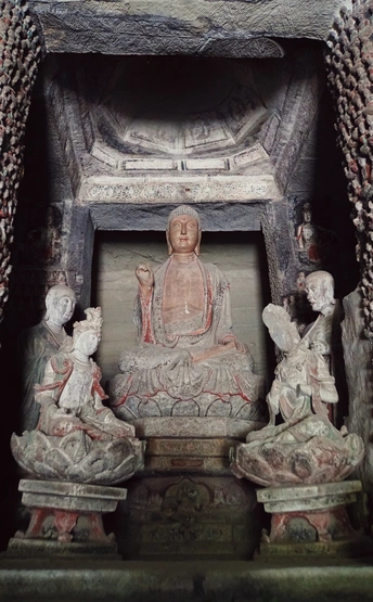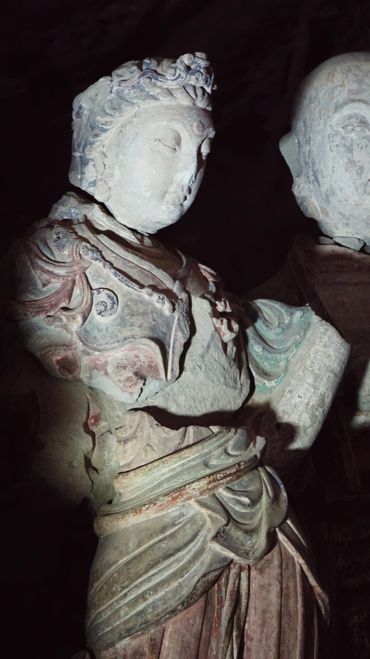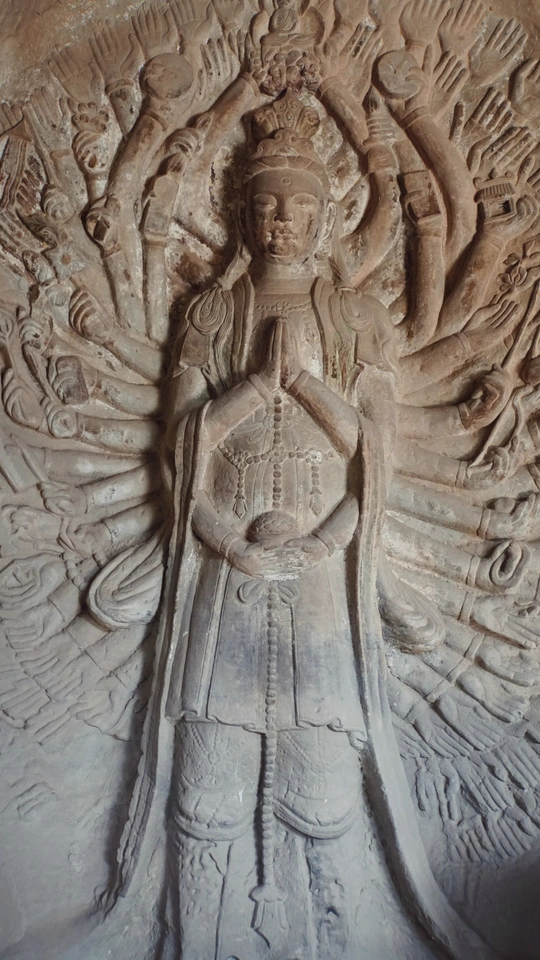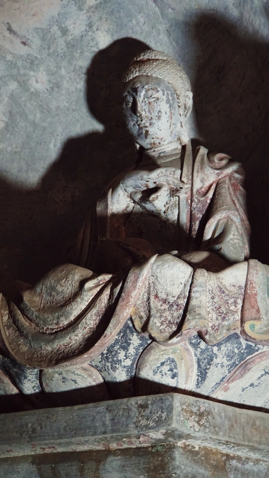 这是山林深处的隐秘石窟,在弯绕的山路自驾三小时抵达。 其中造像变化万千,细腻隽永,矿物颜料历经千年但不朽。今日得见,我似瞥见了北宋完窟之时,流光溢彩的片影。 一个下午的时间都在主窟流连:三组释迦牟尼三世佛令人惊叹佛法智慧,我只是长久地望着,一切烦扰便如落雨散去。 “若人欲了知,三世一切佛。应观法界性,一切唯心造。” 数年前在《华严经》中看到的禅语,今日便明了。 心静则自然,舒展则愉悦……