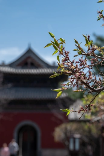 春日的暖阳倾洒而下,为这幅古建与新枝交织的画面披上一层柔和的金纱。画面近处,那树枝伸展着,嫩绿的叶片像是被阳光亲吻过,泛着鲜亮的光泽。尚未完全褪去的残花,带着几分娇柔与倔强,在枝头摇曳,似在与新叶诉说着春的故事。 远处的古建,红墙庄重而典雅,承载着岁月的痕迹。飞檐翘角,在蓝天的映衬下,勾勒出古朴而优美的轮廓。那层层叠叠的屋檐,仿佛是历史的书页,每一道纹理都记录着往昔的风雨与繁华。 漫步于这样的场景中,仿佛能听见时光的足音。古建见证了无数个春夏秋冬的轮回,而这春日的新枝,又为它注入了新的活力。它们相互映衬,是古老与新生的对话,是历史与当下的交融。 这不仅是一幅自然与人文交织的美景,更是一种心灵的触动。在这喧嚣的世界里,古建与春景所营造出的宁静氛围,宛如一方净土,让人心生向往,得以暂忘尘世的纷扰。 当微风轻拂,新枝颤动,古建也似在这轻柔的抚摸中舒缓着岁月的疲惫。这一场景,是大自然慷慨的馈赠,也是历史文化无声的传承,在眼眸中定格,在心底里留存,成为记忆中一抹难以忘怀的春韵。这古建春韵,化作心底的诗行,在时光长河中静静流淌,每当忆起,便有一缕温柔与安宁,漫上心房。