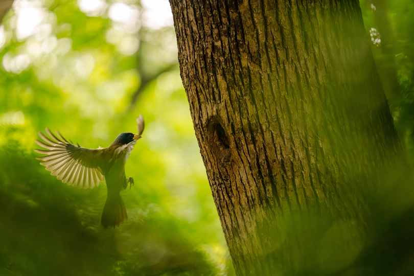归巢的大拟啄木鸟