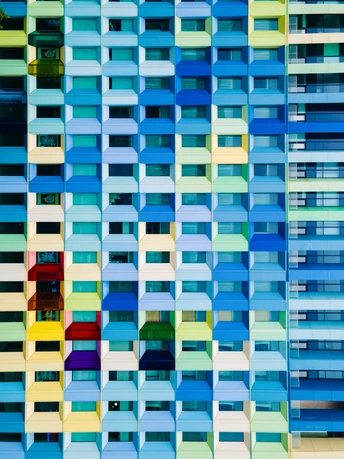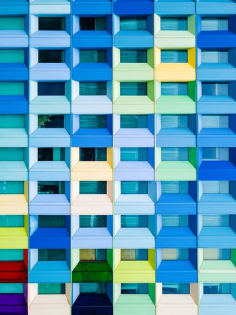 想不到还有如此多彩的建筑 看惯了方方正正的钢筋水泥,黑色或灰色的外墙。这座建筑的整体颜色真的很跳跃。 选择用无人机进行航拍,可以得到更正的视觉。 选择空旷的地方起飞,避免打扰到附近居民。
