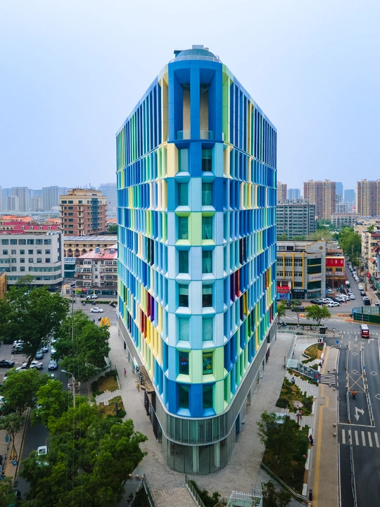 济南这座建筑是“多巴胺”色系的