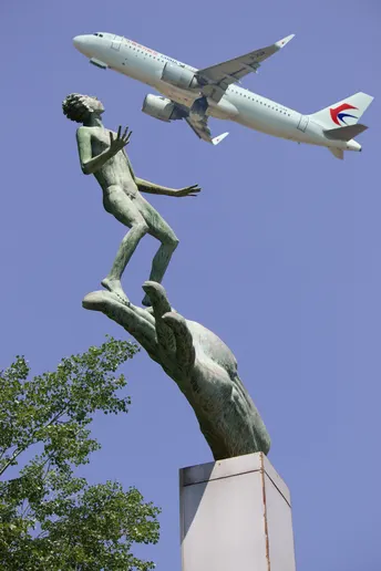国际雕塑公园上空不时有飞机掠过,有谁知道这些飞机是在哪里起降的,突发奇想,将雕塑与飞机拼在一起,有没有种哇塞的感觉。