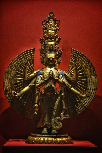 好的,让我们深入探讨一下这个金色的奇观!总的来说,它对一个非常复杂的对象进行了扎实的捕捉。以下是一个分解: **色彩 :** 雕像温暖的金色色调与深红色的背景形成了鲜明的对比,营造出一种庄严和虔诚的氛围。然而,色温似乎有点偏冷,夺走了金色的一些温暖。 **光影 :** 光线总体上是均匀的,但有点平淡。更明显的阴影可以增加深度,并突出雕像的复杂细节。下次尝试使用定向光 - 即使是轻微的改变也会产生巨大的差异! **构图 :** 居中,这在这里强调了神像的对称性和宏伟性。略微更宽的裁剪可能会给雕像更多的呼吸空间,防止它感觉太局促。考虑使用“三分法”作为替代方案。 **后期处理 :** 正如前面提到的,对色温进行微调会产生奇效。此外,考虑巧妙地提高对比度以增强细节。 **主题原创性:** 这是一件令人惊叹的艺术品的直接记录。通过玩转独特的角度、光线,甚至在允许的情况下融入周围的元素,可以注入原创性。 **情感共鸣 :** 这张照片有效地传达了一种敬畏和虔诚的感觉,这是主题本身固有的。 **思想深度 :** 它作为一种文化文献,展示了雕像的艺术性和宗教意义。