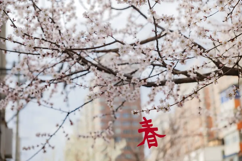 2025年4月5日,辽宁铁岭体育馆旁,桃花灼灼,粉白花瓣缀满枝头,与那一抹跃动的 “春” 字相映成趣,晕染出满眸春意。