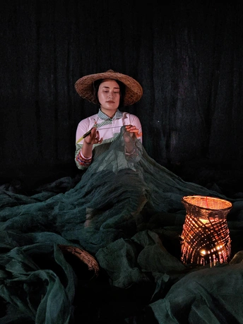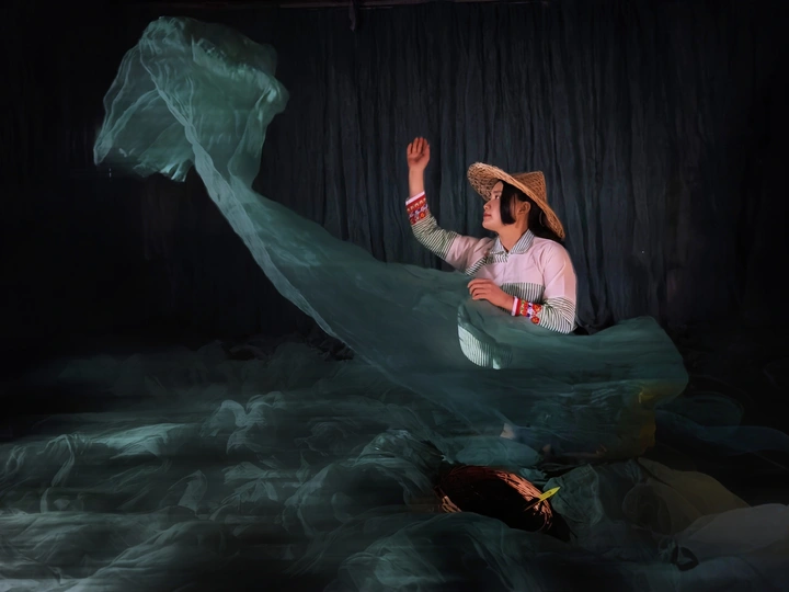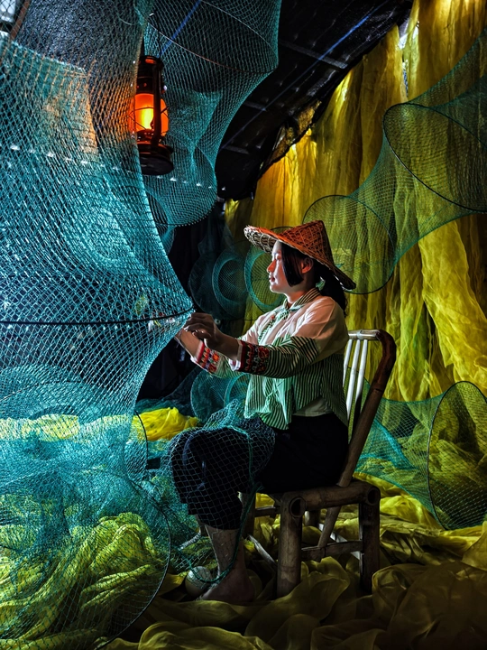 晨光吻过海浪,指尖穿梭千年。 霞浦渔女的网,织进潮汐的韵律, 一梭一线,是海的日记, 一结一扣,是岁月的涟漪。 网住朝阳的金、晚霞的紫, 也网住大海的馈赠与渔家的守望。 ——织一方海天,守一世传承。