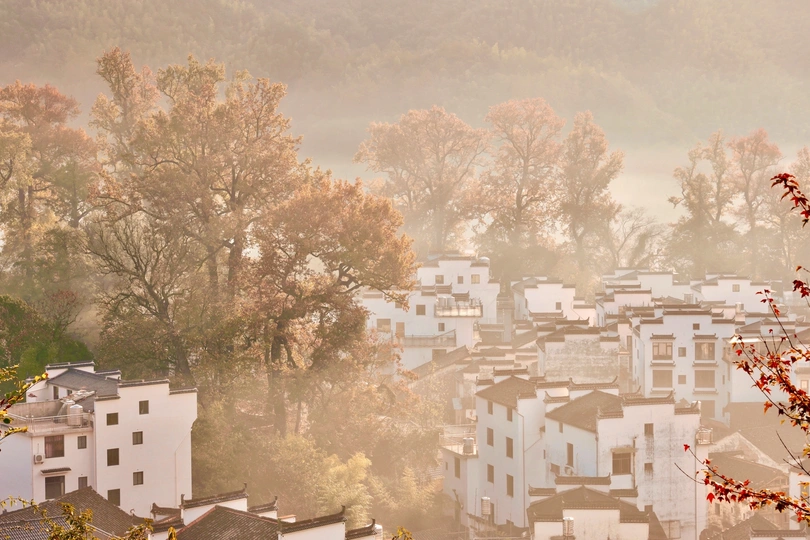 深秋时节,晨雾弥漫,光影与村落交织。高大的枫香树与白墙黛瓦融在了浓浓的秋色中,构成了这幅仙境般的画面。 拍摄时间:2023年11月3日 拍摄设备:Canon EOS R5+EF24-70mm f2.8L Ⅱ USM 光圈:F9 快门:1/100s—1/320s ISO:100
