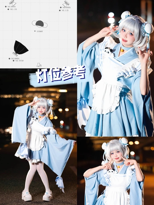 虽然现场我们准备了四个ML100但是为了给更多灯具没那么多的薯薯参考,所以只是用了三个。(如p7四灯补充一下会更好) 灯位参考图:p6(具体功率结合自己的器材调整哦~) 灯光:神牛ML100bi,ML100R 镜头:美科85mm1.8PRO coser:@是阿夜啊 @米拍器材