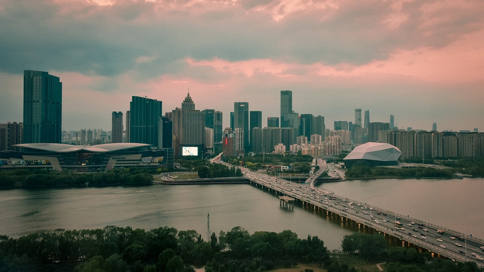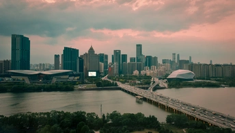这张照片表现了沈阳的繁华与现代景象。夕阳的余晖洒在城市的天际线上,为高楼大厦披上了一层金色的外衣。浑河静静地流淌,桥上车流如织,展现出这座城市的活力与节奏。天空中的云彩被晚霞染成了粉红和紫色,与城市的灯光交相辉映,构成了一幅动人的城市画卷。这是沈阳,一个充满活力的现代化都市,在日落时分展现出它独特的魅力。
