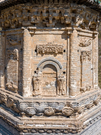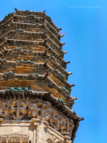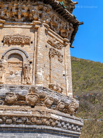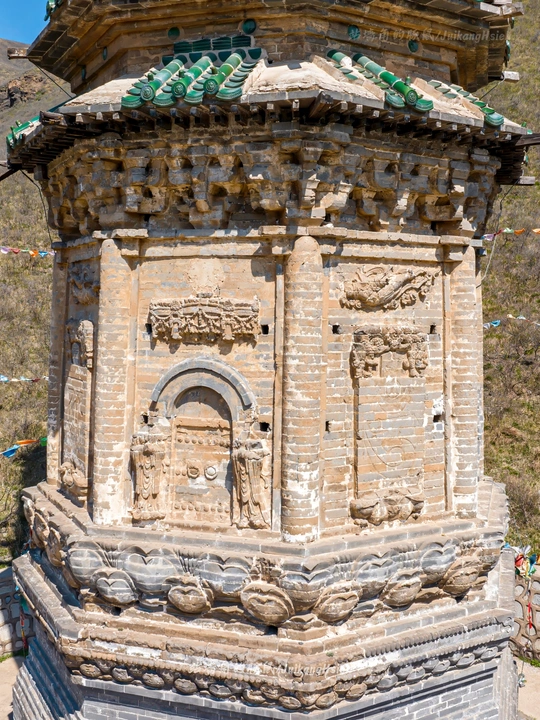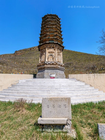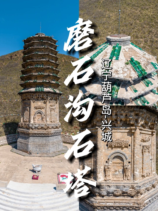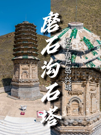 在葫芦岛兴城以南的群山之中,有一座沉默的古塔,悄然伫立于磨石沟西侧的山坳里。山路不宽,草木掩径,唯有风穿过树梢,低声细语,引人靠近这段被时间轻轻掩埋的辽代记忆。 磨石沟塔,八角九级,砖雕密檐,是辽代中晚期的佛塔遗存。它没有繁复金饰,也无香火缭绕,塔座早已风蚀剥落,塔刹不知所终,然而它的美,却在每一处残损中隐隐发光。 塔身四面券门兽面衔环,门侧胁侍垂手肃立;砖雕飞天轻举莲花,姿态柔和如梦;碑座龟趺虽已断损,碑面粗体梵字却仍带着古老的力量。它们像是辽代工匠留给后人的回音,穿越千年风雨,依旧低声诉说着彼时的信仰与审美。 阳光斜洒在密密砖檐之上,绿釉瓦镜偶尔反出一丝淡光;塔身肌理斑驳,仿佛时间亲手雕刻的年轮。你站在塔下,会恍惚间忘了自己身处何年,仿佛历史就藏在这些砖缝之间,只要再靠近一点,便能听见当年的钟声。 它不是网红地,没有游人如织,也没有导览喇叭的吵杂。这里有的,只是沉静的山风、无言的古塔,以及一段段被风吹过的辽代过往。 若你心中曾有过对“古”的执念,对“静”的向往,那么来一次磨石沟塔吧。在这里,你无需喧哗,只需聆听。听一座塔,用沉默讲完千年的故事。
