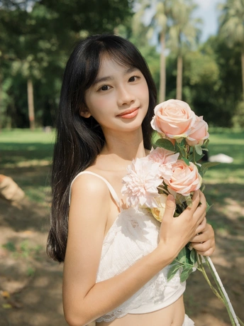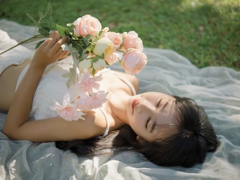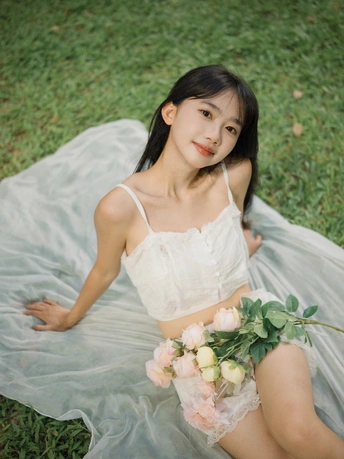 绿潮漫过脚踝的时刻,忽然读懂草木的暗语——那些被晒得半透明的花瓣,正以每秒五厘米的速度诉说着永恒。风鼓起裙衫的弧度,像未写完的情诗被吹开扉页,而她的影子在草甸上洇成一朵铃兰。