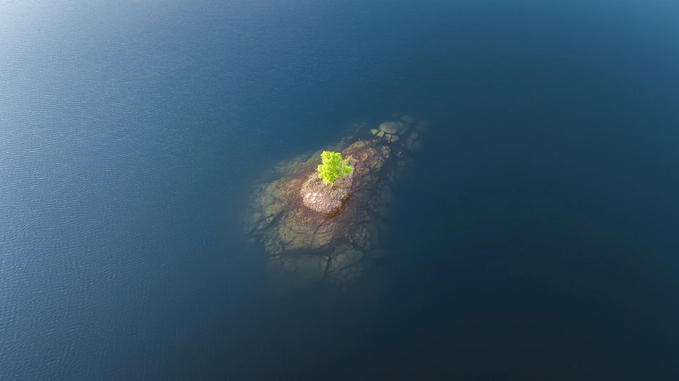 在眉山市仁寿县的千岛湖黑龙滩水库拍到的湖心孤岛孤树。