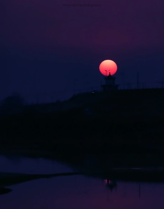 这组是去年冬季那场大雪初晴过后的天空,那天的太阳格外的红,天空的颜色呈现紫红色,特别漂亮