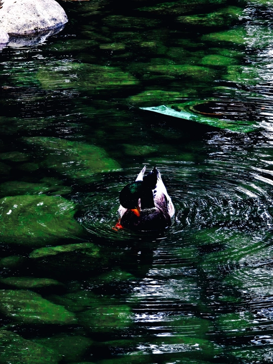拍照想法:一只野鸭悠然游于碧波之上,橙喙轻点羽毛,漾起圈圈涟漪。清澈水底的石块若隐若现,似在诉说着水底的静谧。这一方天地,是自然馈赠的悠然角落,远离喧嚣,时光在此刻慢了下来,每一圈水波都晕染着闲适与自在。 拍照设备:小米手机14
