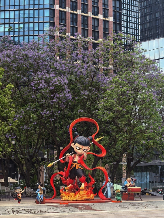 成都交子大道|哪吒与蓝花楹同框