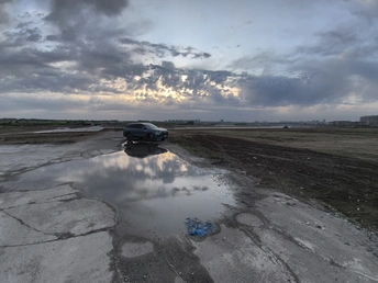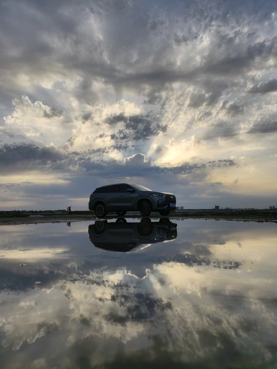 云漂亮,边开车边看风景,正在规划建设的河堤边有一处积水,于是把车停这里拍个倒影,最后一张给大家解密下拍摄环境。手机直出未调色,车牌做了处理