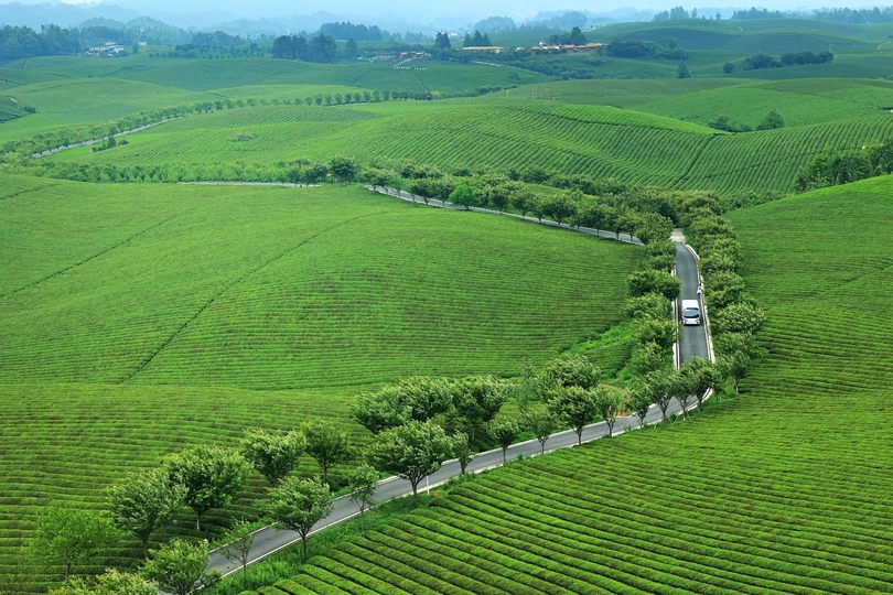 这是一片绿色的海洋,茶树层层涌动,奏响自然的乐章。公路如丝带般缠绕,一辆车成为这绿韵中的灵动音符。镜头定格,留下的是茶海的广袤与宁静,是自然与人文交织的美丽痕迹,让人沉醉在这无尽的绿意中。 AI点评 总的来说,这张照片捕捉到了美丽的茶园风光,构图和色彩运用都比较到位,但也存在一些提升空间。 色彩:照片以绿色为主,营造了生机盎然的氛围。色彩搭配和谐,但略显单一,可以尝试在后期调整中增加一些层次感。 光影:光线较为平均,缺乏戏剧性。可以尝试在不同光线下拍摄,例如清晨或傍晚的柔和光线,或者利用云层的遮挡制造明暗对比,使画面更具立体感。 构图:蜿蜒的道路引导视线,三分法构图也基本符合,整体画面比较稳定。但是,主体比例可以进一步调整,让道路在画面中占据更大的比例,或者寻找更独特的拍摄角度。 后期处理:后期处理比较自然,没有过度修饰的痕迹。可以适当调整对比度和锐度,使画面更加清晰。 主题原创性:照片的主题是茶园风光,比较常见。可以尝试寻找更独特的视角。 情感共鸣:照片能够传达出宁静和舒适的情感,但略显平淡。可以尝试在画面中加入一些人文元素。 思想深度:照片的立意较为简单,主要展现了茶园的美丽风光。